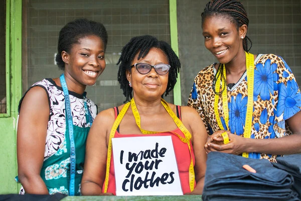 Kleider zum Verlieben – die handgenähten OAKLYNN Sommerkleider von Global Mamas werden mit ganz viel Liebe für Dich im Batiking und Sewing Center in Cape Coast Ghana hergestellt!