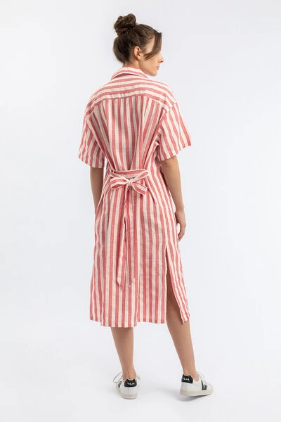 Das auf Basis unseres beliebten Bowling Shirts völlig neu entwickelte Bowling Shirt Dress kombiniert einen zeitgenössischen Fit mit einer Mid-Century Ästhetik. Der Taillengurt erlaubt es das Kleid individuell zu stylen und kann sowohl vorne als auch hinten gebunden werden. Etwa knielang, mit Seitenschlitzen für optimale Bewegungsfreiheit. Das Kleid ist vorgewaschen.