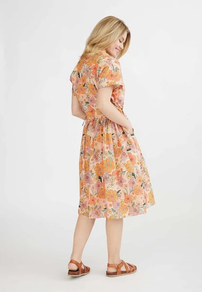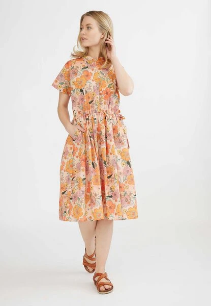 Sommer und Sonne, das ist es, was dieses schöne Kleid repräsentiert. Das Kleid ist mit einem schönen Retro-Druck entworfen und in einem köstlichen leichten gewebten Baumwollpopeline genäht. Die Kordelzug in der Taille verleiht einen femininen Look. Das Kleid hat Taschen, ist GOTS-zertifiziert und hat dänisches Design.