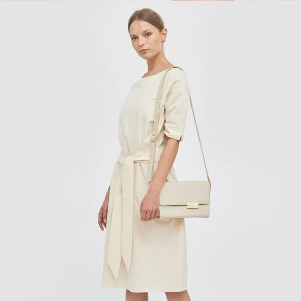 Unser Kleid aus gewebten Gabardinen-Stoff mit befestigtem Gürtel wird sofort zu Ihrem neuen Lieblingsklassiker. Das Kleid reicht bis zu den Knien und hat einen runden Halsausschnitt und ellenbogenlange Ärmel. Der Gürtel kann entweder vorne oder hinten am Kleid gebunden werden und verleiht dem Kleid eine tolle Form. Das Kleid besteht aus Gabardine, einem dicht gewebten Stoff aus 100% Bio-Baumwolle und ist in zwei Farben erhältlich: Cream und Schokoladenbraun.