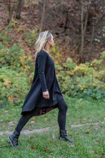 Damit nichts mit dem Originalmuster konkurriert, haben wir uns für einen minimalistischen trapezförmigen Schnitt entschieden, der Bewegungsfreiheit bietet und die Beine betont. 😉 In Underworld wirst du nicht unbemerkt bleiben!