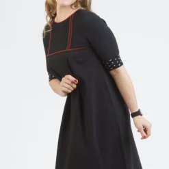 Dieses locker fallende Kleid schmeichelt mit einem weiblichen Schnitt und dem Front- und Rückenausschnitt in V-Form jeder Frau. Das Midikleid verfügt über einen zusätzlichen Gürtel aus demselben Stoff, mit dem eine schmale Taille gezaubert werden kann. Der Tellerrock ist weit ausgestellt und verdeckt die Knie ganz ladylike. Um das an- und ausziehen zu vereinfachen verfügt dieses Kleid über ein flexibles Gummiband an der Taille, das verdeckt eingearbeitet wurde.