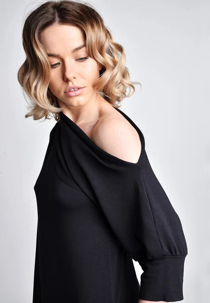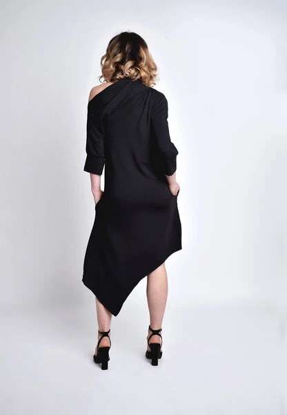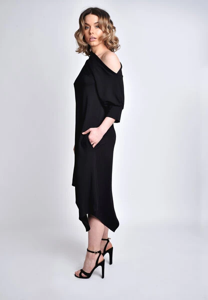 Kurzes Kleid, Midikleid schwarz asymmetrisch