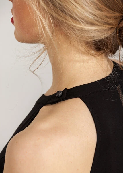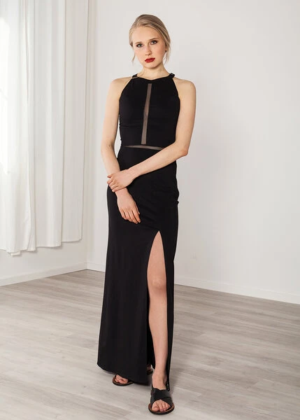 • Abendkleid lang schwarz mit Netz-Details