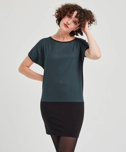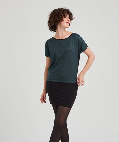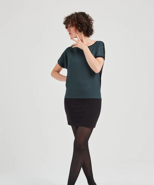 Linda – Kurzarm Kleid aus recyceltem Polyester und Bio Baumwolle. Elegant, sanft und bequem zugleich, schmiegt sich dieses Kleid an deine Haut,