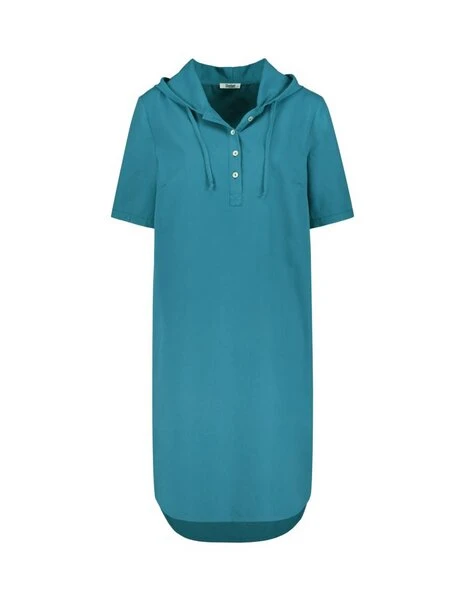 Frisch, lässig und modern begleitet Sie unser Hoodie-Kleid durch den Sommer! Statt wie üblich aus Jersey besteht unser Kapuzen-Kleid aus reiner, fein gewebter Bio-Baumwolle. Der nachhaltige Stoff trägt sich angenehm leicht, luftig, atmungsaktiv und Temperatur ausgleichend. Das modische Kleid ist aufwendig gestaltet, mit Tunnelzug-Kapuze, Knopfleiste, Knopfmanschetten an den kurzen Ärmeln, längerem Rückenteil, gerundeten Säumen und Seitenschlitzen. Das Kleid ist GOTS und Grüner Knopf zertifiziert, die Herstellung erfolgt fair und nachhaltig während der gesamten Produktion und Lieferkette.
