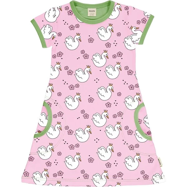 Meyadey Kurzarm Kleid Schwäne rosa – bio-Baumwolle