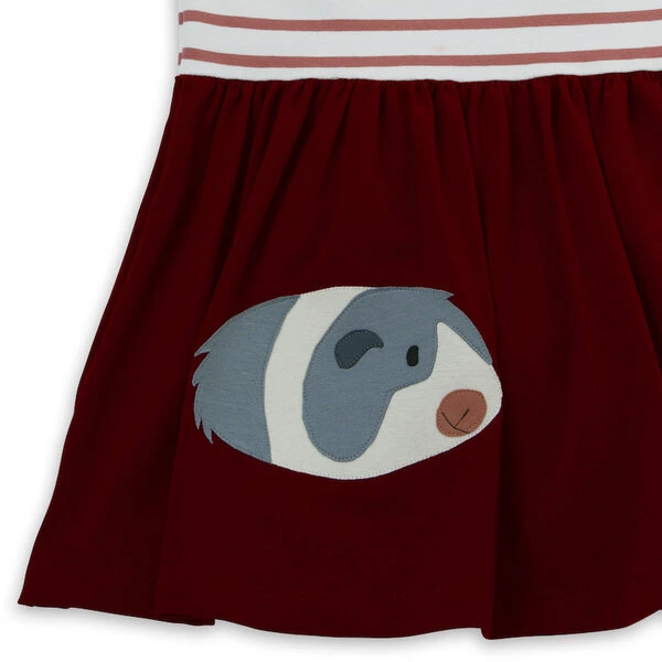Das ideale sommerlich leichte T-Shirt Kleid aus feinem Biojersey. Fröhlich gestreift und mit entzückender Applikation – so macht der Sommer Spaß! Bei uns wird jeder kleine Tierfan fündig – Pferd oder Giraffe oder Meerschweinchen. Findet euer Lieblingstier!